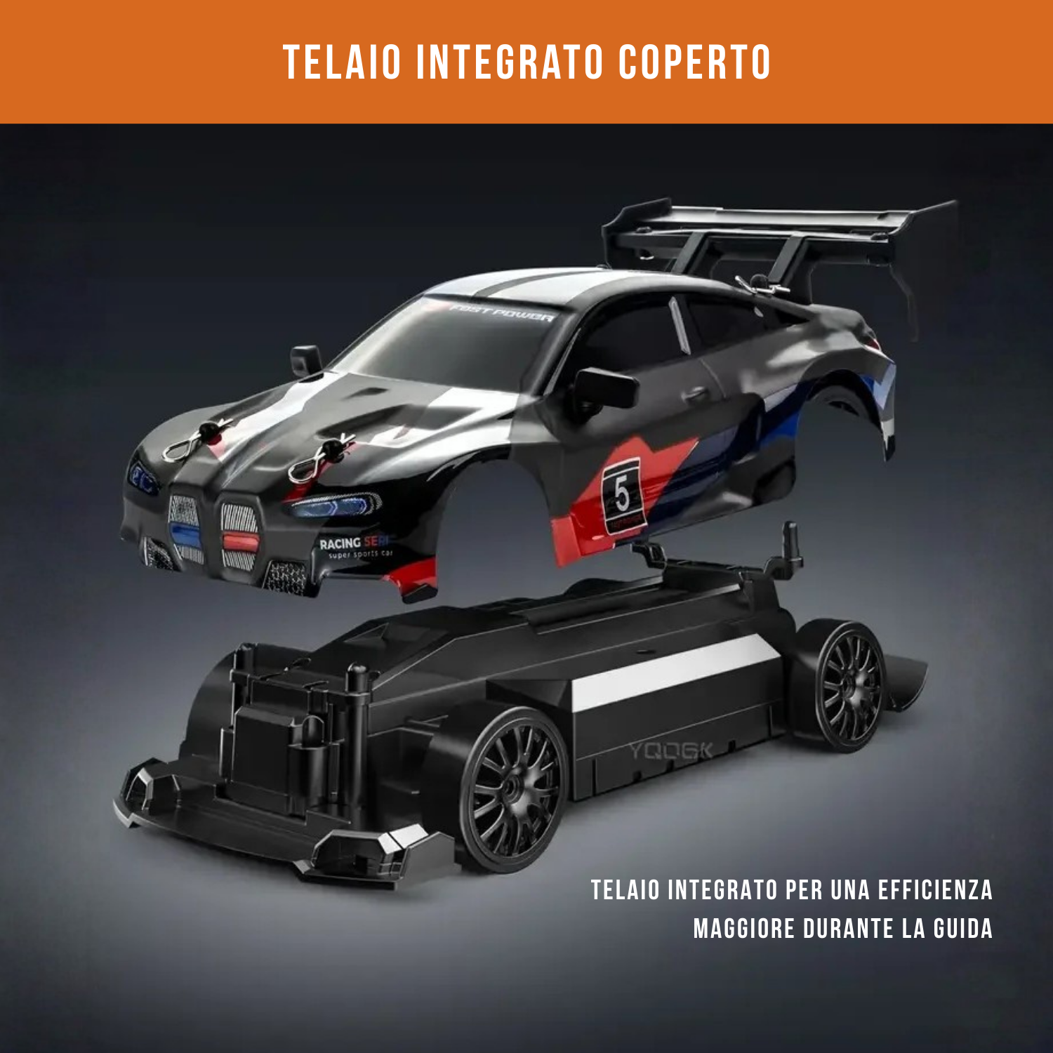 🚧 Assolutamente no. È costruita con un telaio robusto e sospensioni che assorbono gli urti. Resiste a derapate, urti leggeri e vari tipi di terreno, così puoi divertirti senza la preoccupazione di romperla al primo utilizzo.