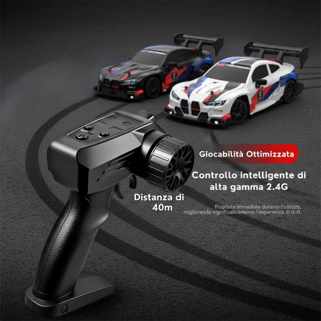 Perfetta per bambini e adulti, questa auto RC funge sia da macchina da corsa ad alta velocità che da modello da collezione. Il suo design realistico, abbinato a un set di pneumatici personalizzabili e al controllo della deriva reattivo, lo rende un regalo ideale per compleanni, festività o per qualsiasi appassionato di RC.